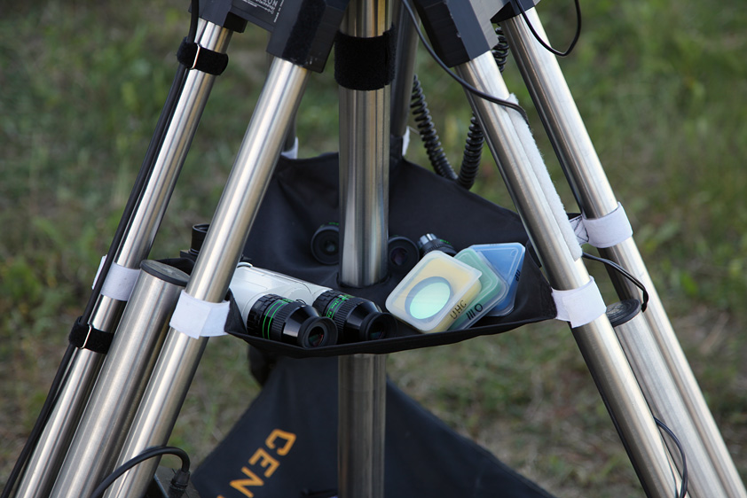 Um jedoch auch bei niedriger Stativstellung eine praktische Okularablage zu haben,