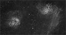 Links unten im Bild ist zudem der etwas kleinere Nebel IC 417 zu sehen. Er ist rund 10000 Lichtjahre entfernt und enthält ebenfalls einen Sternhaufen.