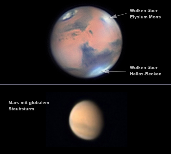 Weiterhin können Winde Staubstürme erzeugen, die manchmal sogar den gesamten Planeten einhüllen.