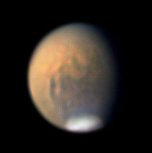 da diese immer bei einer Perihel-Opposition zu sehen ist. Bei den Oppositionen 2003 und 2005 war die südliche Polkappe optimal sichtbar.