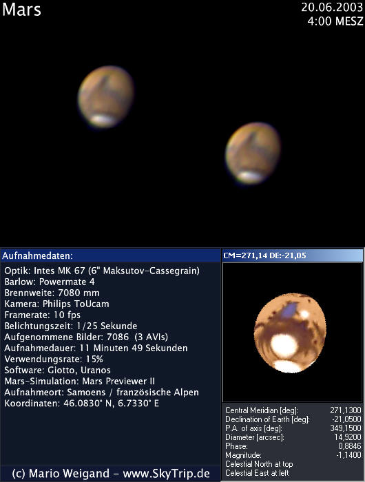 : Das erste Bild auf dem man deutlich den dunklen Saum um die Polkappe erkennen kann. Dieser dunkle Bereich war vor kurzem noch mit einer dicken Schicht aus Kohlenstoffeis bedeckt.