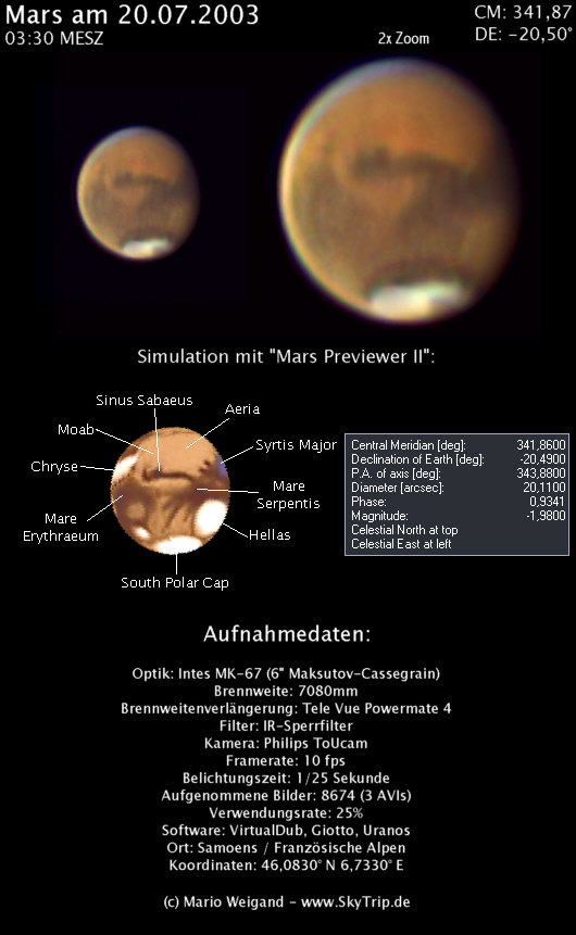 Kommentar: Mittig und gut sichtbar ist Sinus Sabaeus, am östlichen Rand verschwinden Syrtis Major (nördlich) und