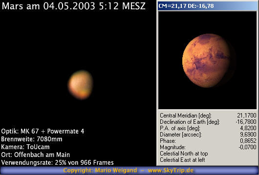 : Endlich sind erste Details zu erkennen. Das dunkle Gebiet ist Mare Erythraeum mit der helleren Chryse-Region darüber.