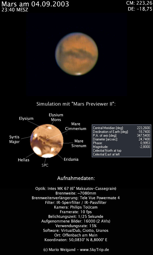 : Der erste Mars mit dem 6" Maksutov-Cassegrain nach der Opposition. Das Seeing war leider nicht so gut...