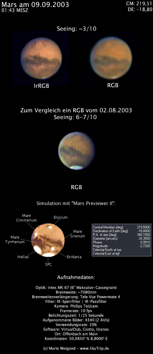 Kommentar: Der IR-Passfiler von Baader ist gekommen! Bei diesem Bild habe ich eine normale Aufnahme gemacht, bei schlechtem Seeing, aber zusätzlich noch ein S/W-Luminanzbild mit dem IR-Passfilter.