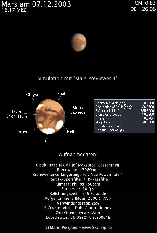 : Ein letzter Mars als Abschied, er hat nun schon sehr stark an größe verloren und viel ist bald nicht mehr zu erkennen.