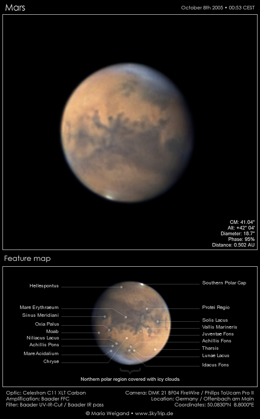 : Blick auf Chryse, Mare Erythraeum und Solis Lacus. Vallis Marineris ist gut zu erkennen. Die Wolken im Norden werden immer dichter, es ist anzunehmen, dass sich auch schon eine Menge Material abgelagert hat.