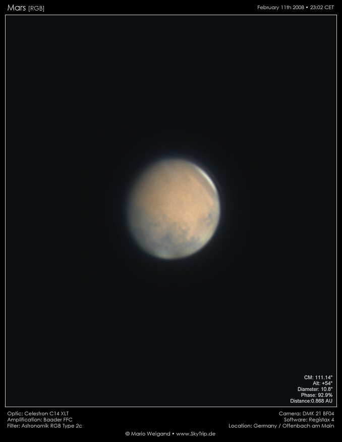 Kommentar: Wieder gab es relativ gute Bedingungen und auf dem nicht einmal mehr 11 Bogensekunden großen Scheibchen mit