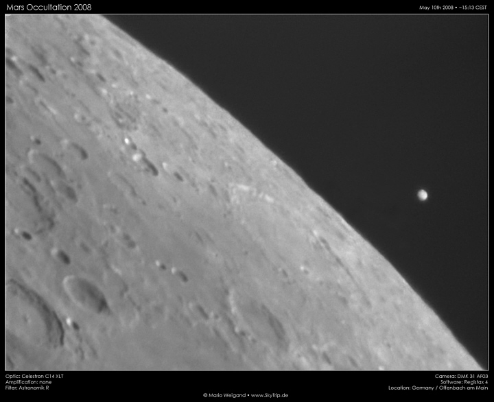 Kommentar: Mars hat sich inzwischen deutlich vom Mondrand entfernt.