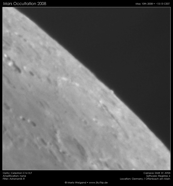 Kommentar: Diese Animation zeigt das Ende der Marsbedeckung. Am Wabern des Mondes erkennt man, wie schwierig das Seeing zu der Zeit war.