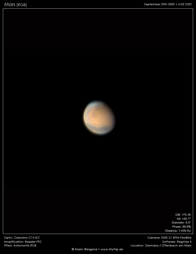 Am 27. September 2009 habe ich den ersten Anlauf gestartet und Mars mit dem C14 das erste Mal nach über eineinhalb Jahren wieder aufgenommen.