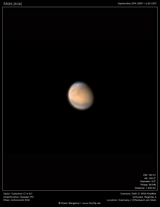Kommentar: Am 27. September 2009 habe ich den ersten Anlauf gestartet und Mars mit dem C14 das erste Mal