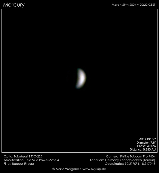 Kommentar: Wie meistens bei Merkur-Beobachtungen in der Abenddämmerung, waren die Bedingungen wieder mal sehr schlecht. Daher ist es