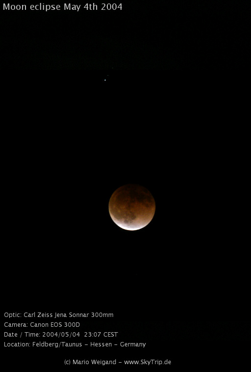 Der Dunst hat die Farben leider etwas verschluckt, sodass der Mond nicht so intensiv Kupferrot erschien, wie bei der letzten Finsternis.