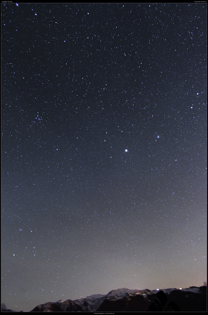 Kommentar: Die Jupiter-Opposition 2015 steht an. Der Riesenplanet befindet sich derzeit im Sternbild Löwe, wie dieses Bild mit Alpenkulisse zeigt.