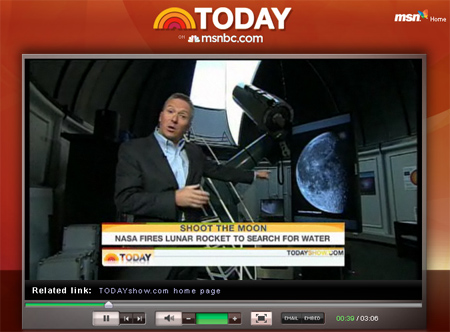 TV: MSNBC "The Today Show" 1 Foto: Motiv / interner LinkDatumSeite Mond 20.10.2008 - Mondfoto vom 20.10.2008 wird im Rahmen eines Berichts zu LCROSS gezeigt. Video online