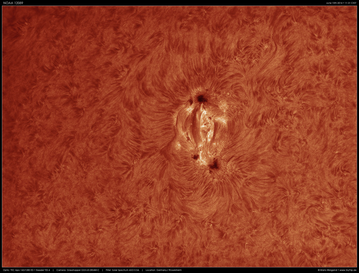 Die Fleckengruppe NOAA 12087 am 15. Juni 2014. An diesem Tage wurde die Gruppe nach McIntosh mit Dai/Dai klassifiziert.