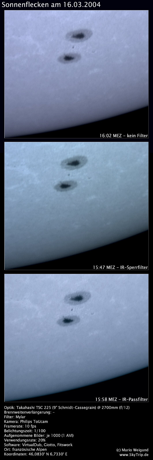 : Ein kleiner Filtertest hat ergeben, dass sich ein IR-Passfilter sehr gute für die Webcam-Fotografie bei der Sonne eignet.